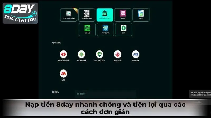 Hướng dẫn nạp tiền 8day theo từng phương thức cực chi tiết